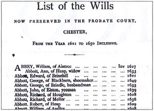 CHESHIRE RESOURCE : Part of the probate list at Chester.
