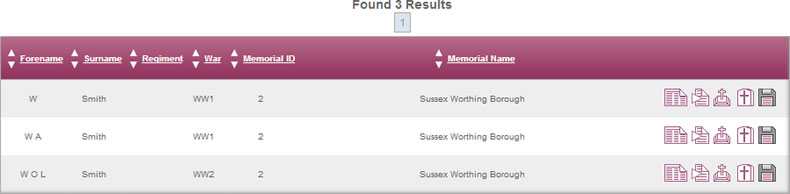 4. The second icon provides a transcription of the individual's details available, showing the war the memorial relates to.